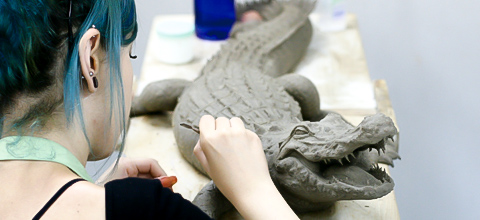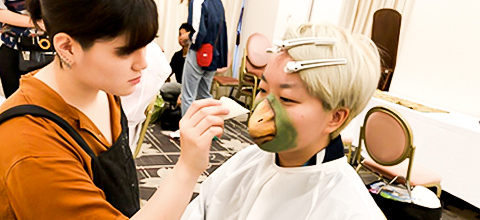 - 実際の映画やテレビ番組、舞台などの制作現場に、特殊メイクや特殊造形、ヘアメイクスタッフとして参加。在学中からプロとともに業界で活躍しながら、現場感覚と実践力を身につけていきます。
