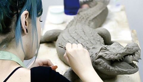 粘土で立体を起こし、作品制作の基礎となる原型力を強化。形を作る技術だけでなく骨格の知識もつきます。