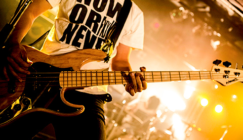 音楽総合学科とコラボしてライブを撮影。アーティストの動きや照明の変化を的確に捉える技術を体得します。