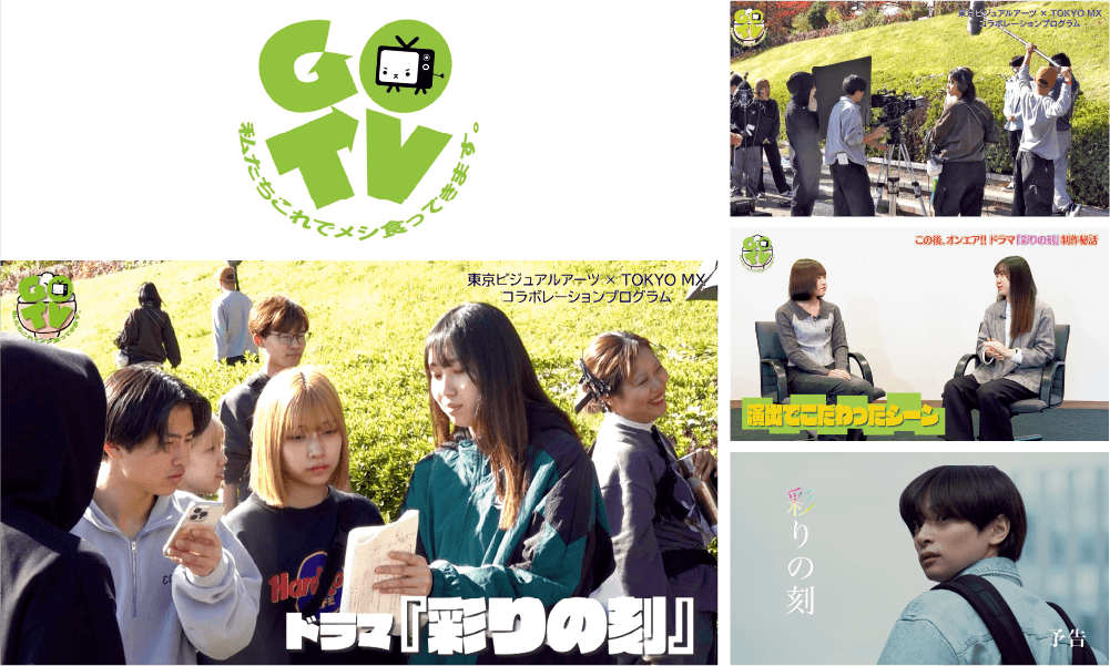 TOKYO MX(東京メトロポリタンテレビジョン株式会社)と連携。番組制作プロジェクトとして在学中に制作したテレビ番組を「TOKYO MX」のゴールデンタイムにON AIRします。エンドロールで自分の名前を見つけたときは思わず感動します。