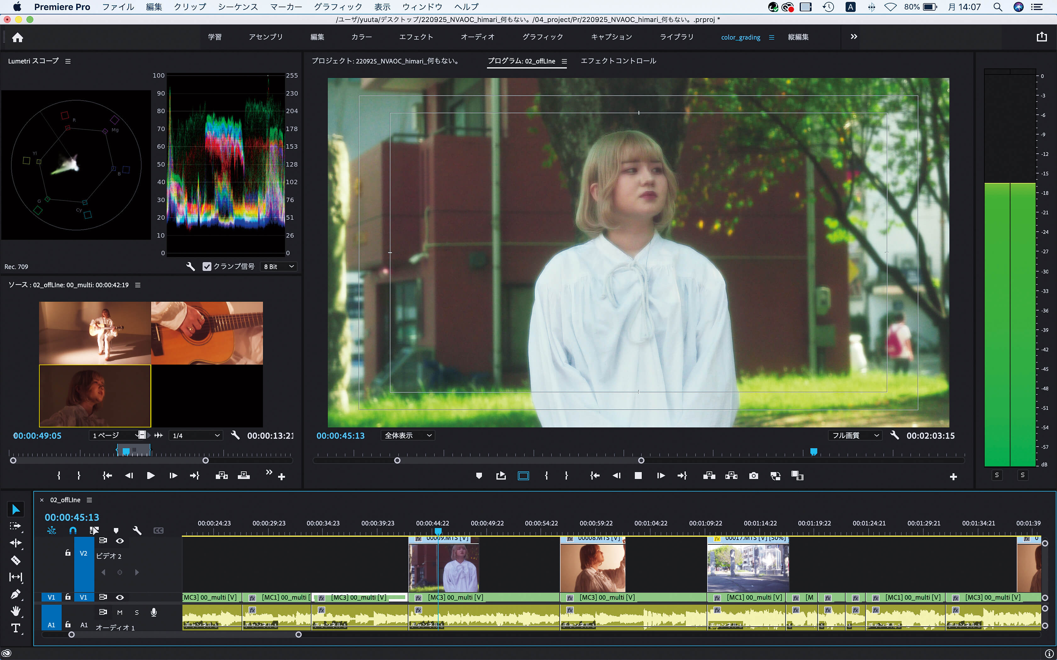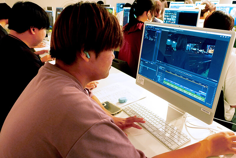 そして撮影した映像は自分たちで編集も行います。撮影技術はもちろん、編集技術も同時に身につけることができミュージックビデオ制作の一連の流れを学ぶことができます。