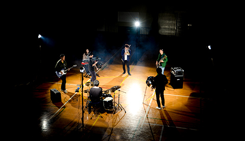 音楽総合学科やパフォ-ミングアーツ学科とコラボして、MVやCMといった映像を一緒に制作します。