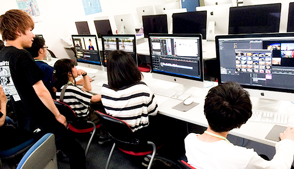 個人やグループで、映画の構造とテーマを探求。業務用機材を用いて技術面も基礎から応用まで学べます。