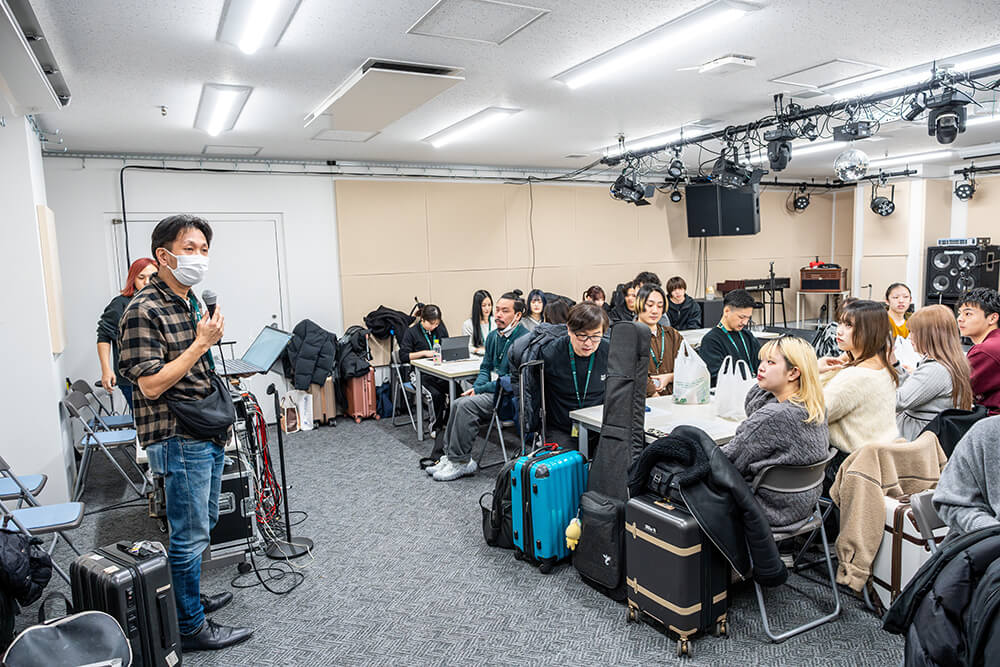 はじめは探り探りでしたが、演奏が始まるとお互いの楽曲を聴いて意見交換をするなど交流を深め、各地区のミュージシャン講師やPAエンジニアからアドバイスを受けるなど学生にとって有意義な時間となりました。