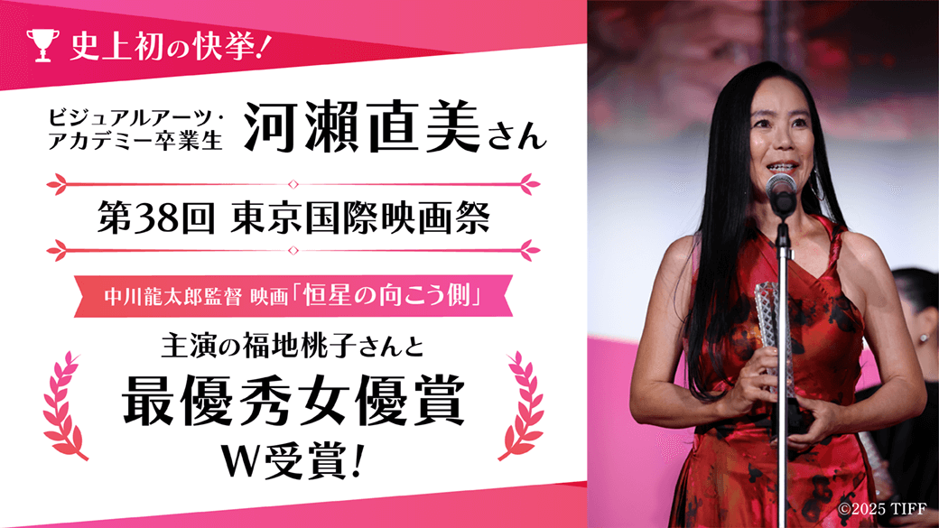 2025/11/21 卒業生【卒業生ニュース】映画監督・河瀨直美さん「第38回東京国際映画祭」にて最優秀女優賞を受賞!ビジュアルアーツ・アカデミー 映像学科卒業生であり、世界的映画監督として活躍する河瀨直美さんが、映画…
